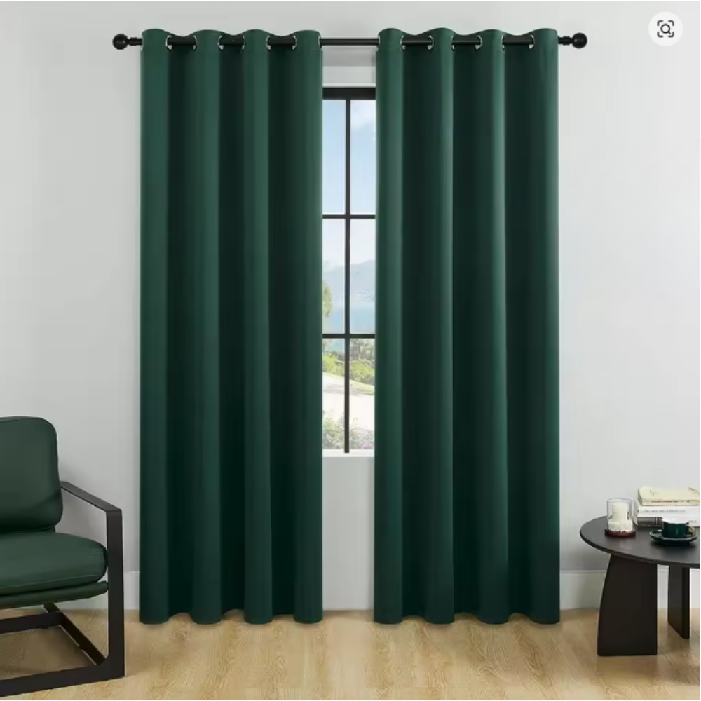 Skapa en harmonisk och ombonad känsla i ditt hem med dessa mörkgröna gardiner i elegant, tätvävd textil. Den ger rummet en lugn och exklusiv atmosfär, perfekt för både vardagsrum, sovrum och kontor.